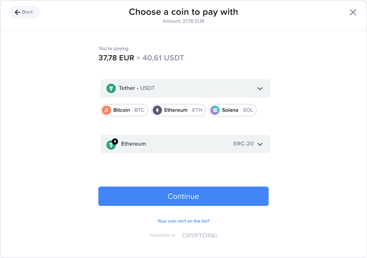 Accept 19 major cryptocurrencies— including Bitcoin, Ethereum, USDC, and more. No technical skills needed— get started in minutes with simple integrations and intuitive tools.