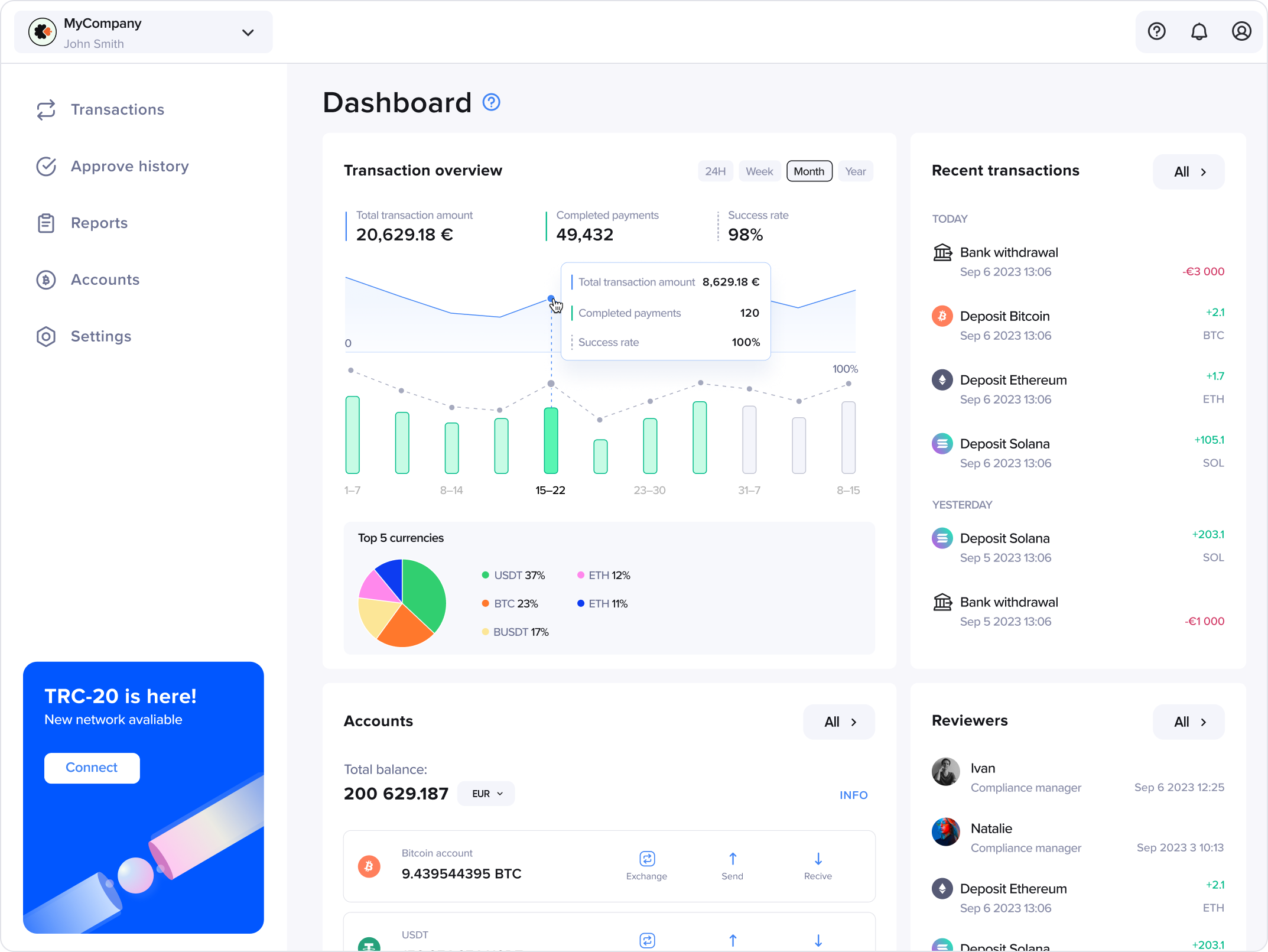Seamless crypto processing for eCommerce, SaaS, iGaming and beyond. Real-time conversion, low fees, and full control over your payments in one secure gateway.